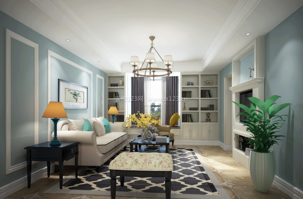 所以今天小编为您拾掇了一些时髦美式客堂。设想师采用了仿佛天空般的蓝白布景色!打破厚沉情感鲜明活跃了空气。