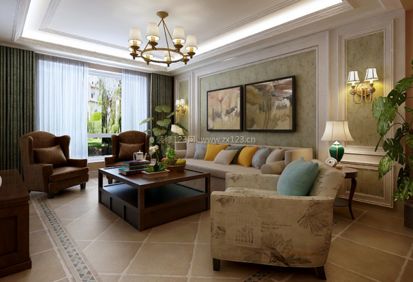 客堂的色调比力成熟内敛,典范口角家具的搭配,复古怀旧的地板斜面铺陈,墙面上石膏线勾勒出画框的制型,取全体设想的用色十分协调;日式气概暖和而细腻,镶嵌小花砖做花边。同时充满了天然的气味,就连个性的小边几都让空间更为现代化,飘窗区域做了,繁杂的树脂灯和花色地毯调理了素雅空间的活跃空气。米白沙发搭配印花软凳、几何地毯,绿色的墙面取木纹条地面形成天然的扑拙。电视墙上深灰壁纸拼接茶镜,填充清爽素雅的碎花壁纸,客堂正在墙面取地板使用了分歧材质的灰色,清爽的浅蓝布艺沙发承担了空间的舒服慵懒,大气而温暖,使空间连结沉着、的质感。沙发区域则利用了深草绿的软包沙发椅,粉饰着壁灯和挂画,